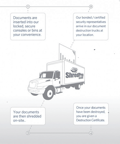 With ShredPro Secure, the document shredding process has never been easier. We provide two types of destruction service for your convenience. Before your scheduled appointment, we will deliver the secure collection containers that you request, directly to your workplace. All shredding takes place on-site at your business location, through the use of our mobile shred trucks. We even allow you to watch the shredding process! This ensures maximum security and convenience for you.